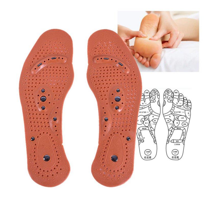 Aceste branturi magnetice stimuleaza si maseaza piciorul in timp ce mergeti. Introduceti branturile magnetice in pantofi si bucurati-va de efectele lor benefice si imbunatatiti sanatatea picioarelor dumneavoastra. Branturile magnetice pentru reflexoterapie sunt prevazute cu magneti si puncte de presopunctura actionand asupra punctelor reflexogene din talpa. Branturile magnetice pentru reflexoterapie au peste 200 de gauri care favorizeaza respiratia piciorului si prevenirea aparitiei mirosurilor.