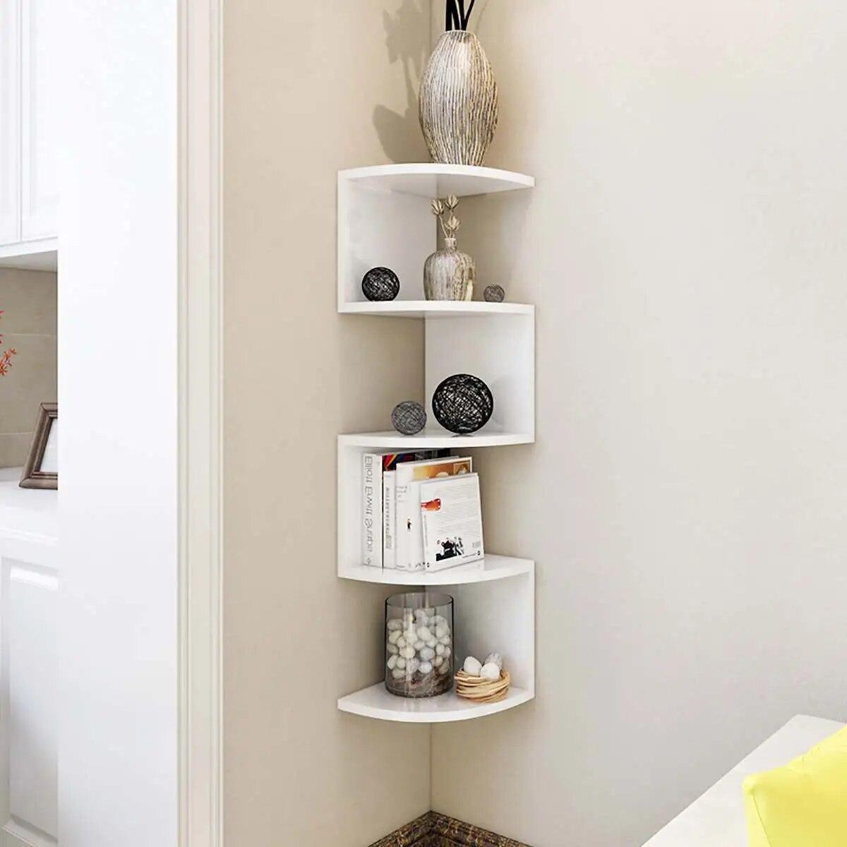 Etajera colt 4 rafturi, 86 x 20 cm, Alb