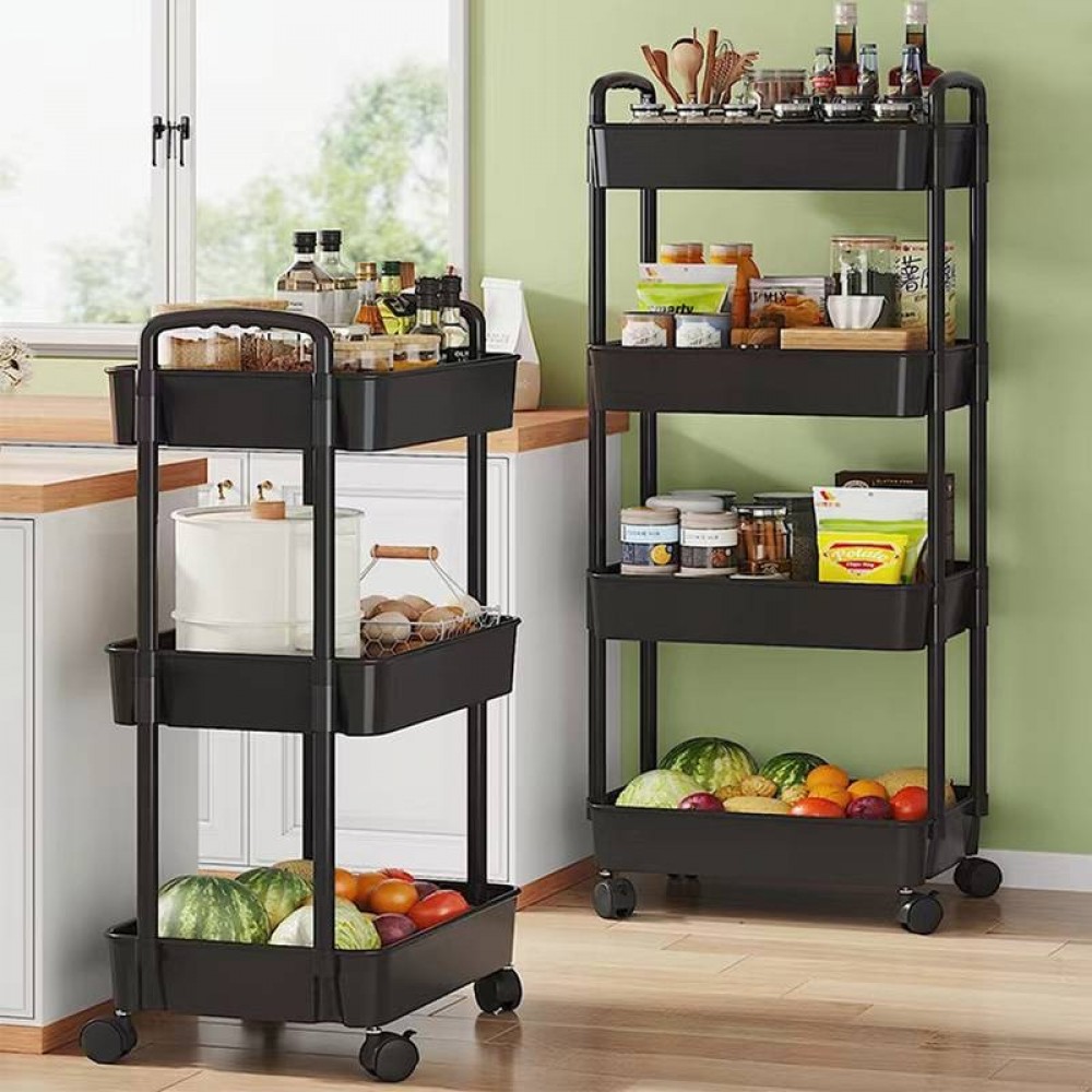 Mobilitate sporita: Datorita rotilor robuste, etajera poate fi mutata cu usurinta dintr-o camera in alta. Astfel, poate fi utilizata in bucatarie pentru depozitarea alimentelor, in baie pentru cosmetice sau chiar in birou pentru organizarea documentelor, oferind o versatilitate excelenta.