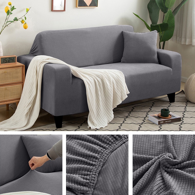 Husa cu elastic pentru canapea cu 3 locuri, Gri inchis