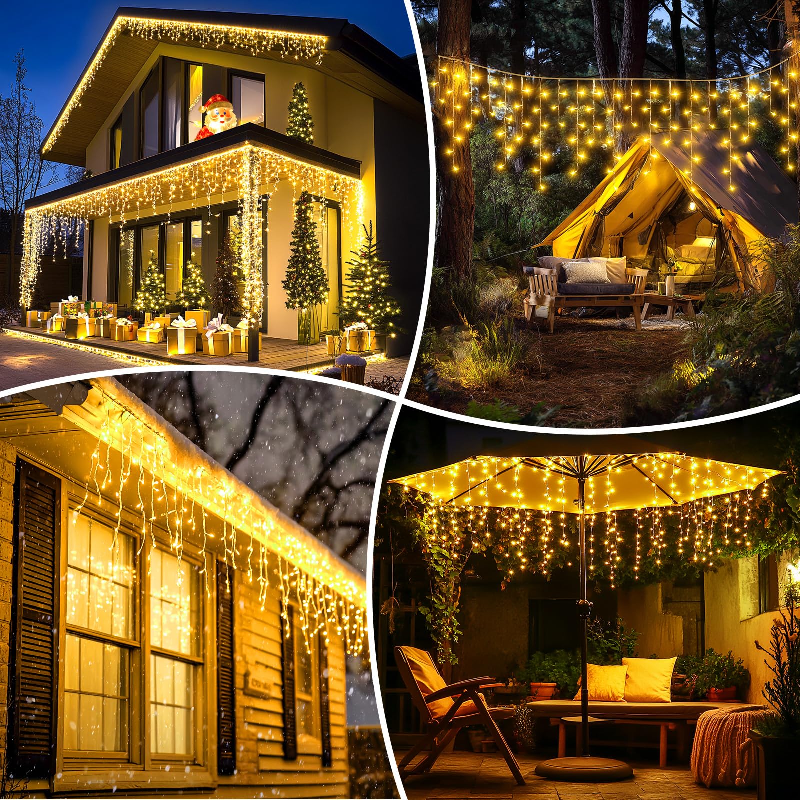 Instalatie franjuri 12 metri, 320 LED, Alb cald