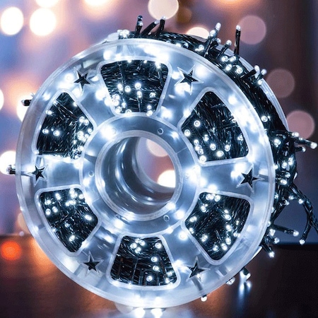 Instalatie led fir 100 metri, rola 500 led-uri culoare alb rece. Instalatii luminoase de Craciun, fir lungime 100 metri, cu 500 led-uri, 8 jocuri de lumini, fir negru. Instalatie led 100 metri, 500 led-uri dispuse pe fire de culoare neagra - lungimea instalatiei de Craciun cu 500 led-uri este de aproximativ 100 metri (lungimea cablului de alimentare este de aproximativ 100 cm).