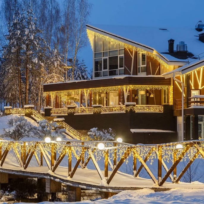 Instalatiile sunt tip perdea luminoasa cu franjuri inegali si sunt interconectabile, putand fi prelungite. Instalatia de Craciun poate fi utilizata atat in spatii de interior cat si la exterior, protejata de intemperii