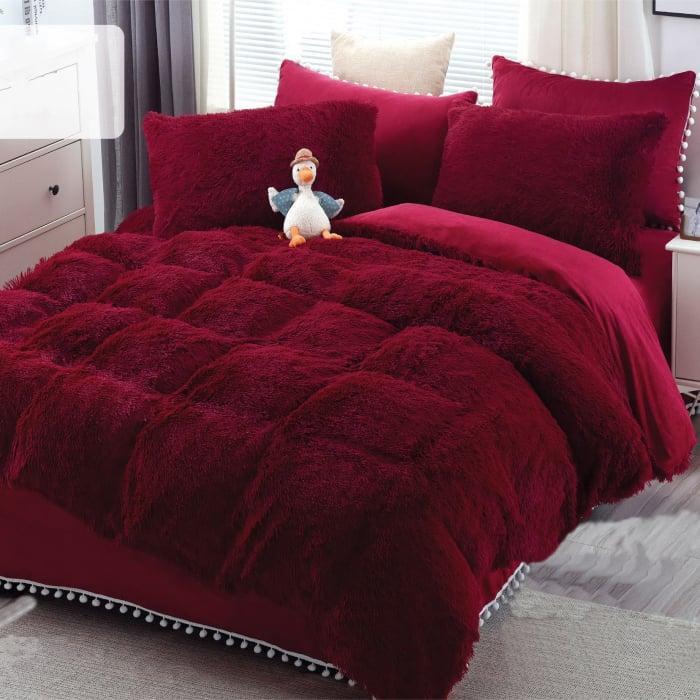 Moliciunea si finetea materialului fleece te va indemna sa nu te mai dai jos din pat in diminetile friguroase. Asadar, fa totul pentru confortul tau si alege o lenjerie de pat pufoasa Cocolino. Nu te vei mai putea desparti de ea, cu atat mai mult daca iti va aminti intotdeauna de jucariile de plus din copilarie! Cearceaful de pat si fetele de perna au o bordura cu ciucuri pentru un plus de eleganta!