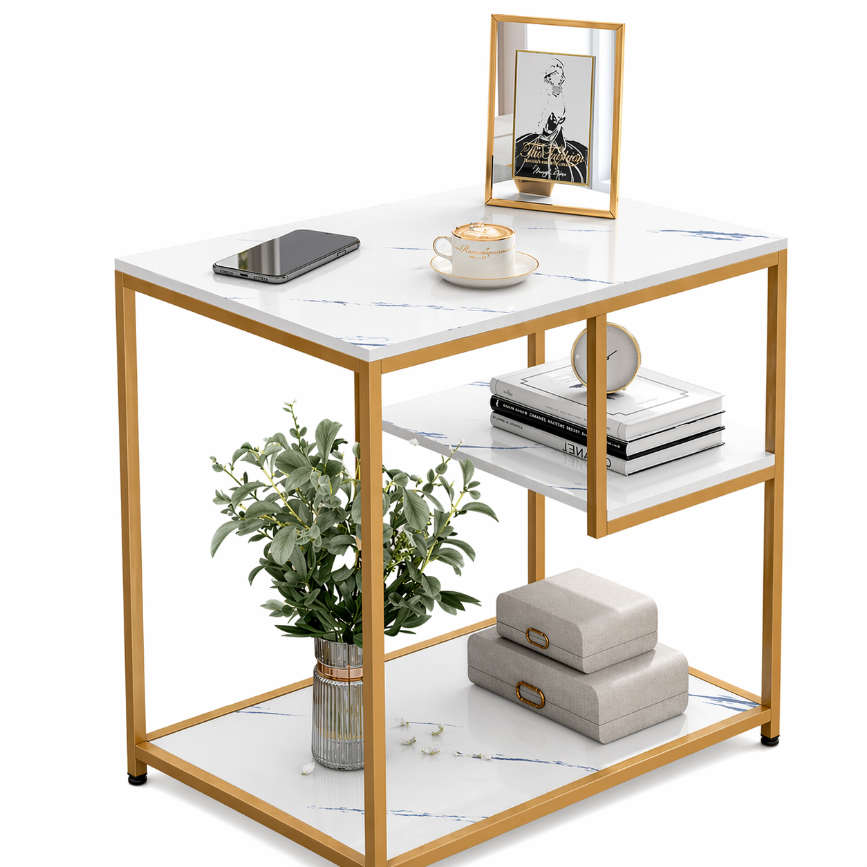 Masuta blat tip marmura, cadru metalic, 3 niveluri, 60x40x68 cm