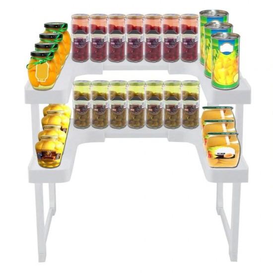 Cu acest organizator puteti aranja condimentele in bucatarie, dar si produsele cosmetice. Etajerele pot fi construite pe doua etaje, sau se alaturi ca doua rafturi unul langa celalalt. Etajerele sunt adaptabile la fiecare dulap. Organizati condimentele, dar, de asemenea, produsele cosmetice, cum ar fi oje, sau chiar medicamente. Orice pentru a tine lucrurile in ordine. Etajerele pot sustine 64 de borcane de condimente. Montar simpla, fara a utiliza nici o unealta. Datorita culorii albe, se potriveste oriunde.