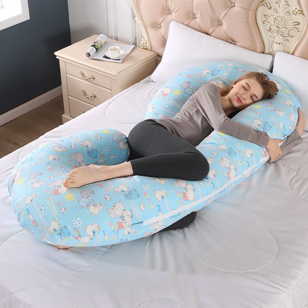 Perna pentru gravide FizioTab® in forma cifrei C are menirea de a sustine gatul, spatele, coapsele, bratele si in special burtica.