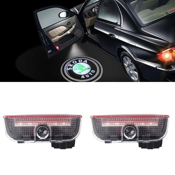 Set 2 holograme LED cu logo SKODA, pentru portiere