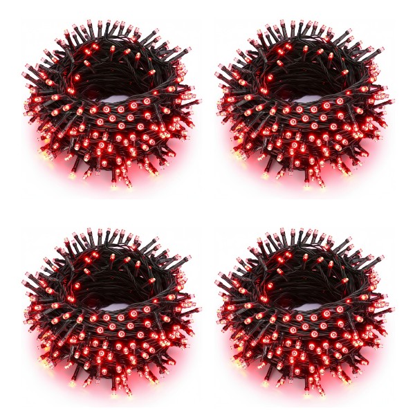 Acest set de 4 instalatii luminoase rosii, cu 70 LED-uri fiecare pe fir de 7 metri, este perfect pentru a adauga un efect vizual spectaculos si uniform in decorul tau de Craciun. Lumina rosie intensa creeaza o atmosfera calda si festiva, evidentiind frumusetea bradului, a balconului sau a fatadei casei. Fiecare fir este gandit pentru a oferi impact vizual maxim, iar culoarea vibranta transforma orice decor intr-un cadru de sarbatoare memorabil.