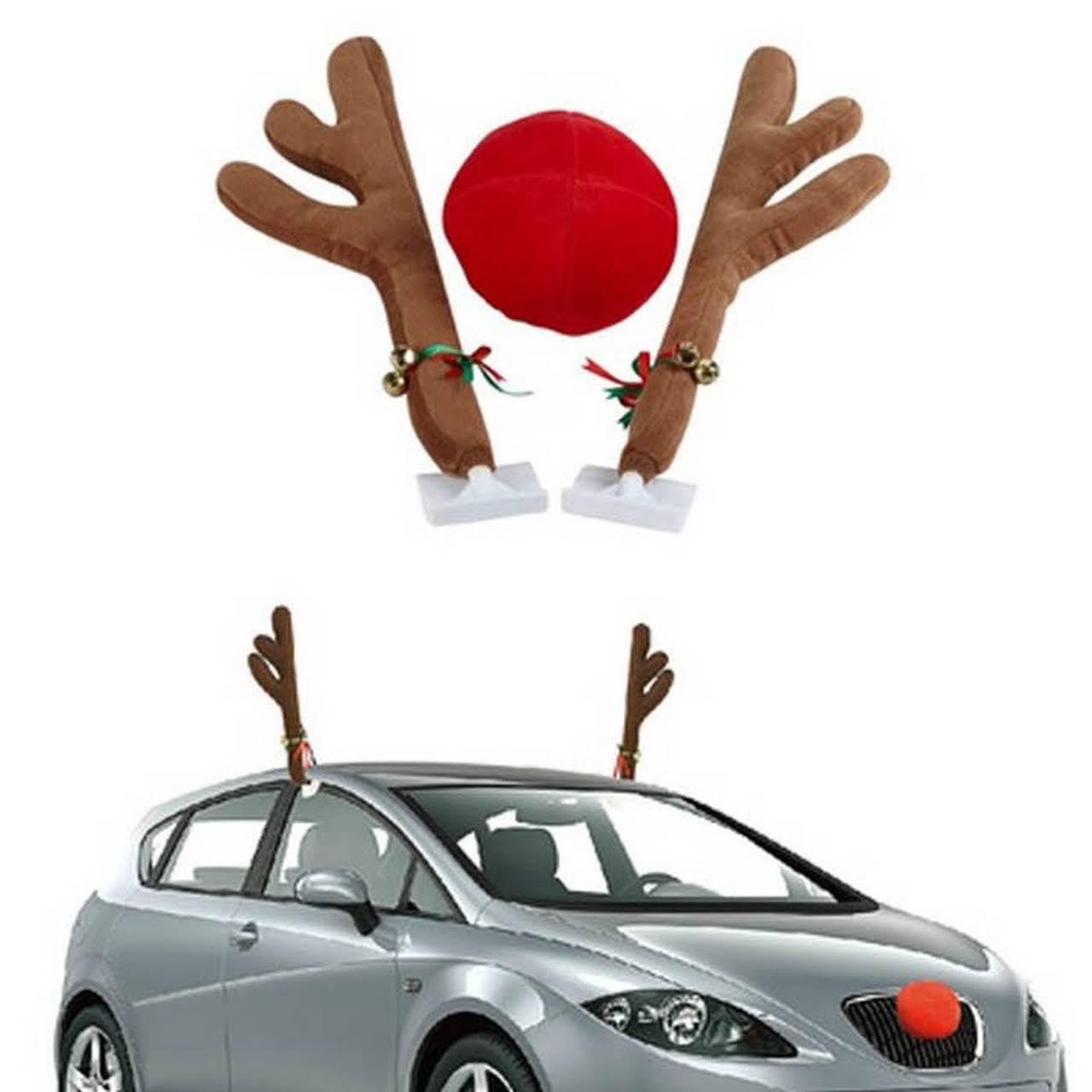 Decoratiune pentru masina de Craciun, coarne ren si nas rosu
