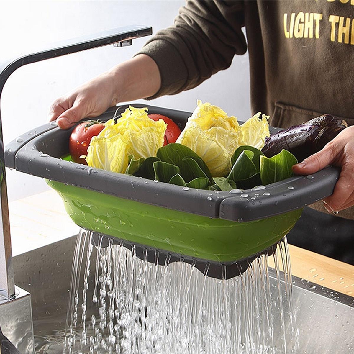 Poate fi utilizata ca filtru pentru alimente in momentul spalarii si ca strecuratoare. Datorita faptului ca poate fi pliata, este versatila. Este confectionata din silicon termorezistent si plastic dur, are manere extensibile ce pot fi asezate pe marginile chiuvetei pentru o mai buna stabilitate si un confort sporit. Perforatiile uniform distribuite la baza asigura drenajul rapid si eficient.