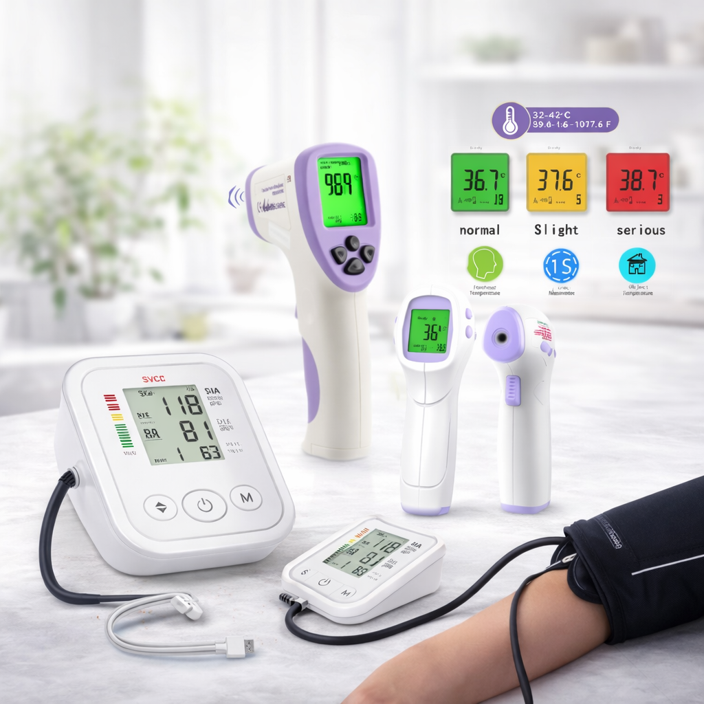Termometrul frontal profesional cu infrarosu masoara temperatura artelei frontale a corpului uman, fiind cadoul ideal pentru orice familie. Acesta masoara temperatura corpului frontal, non-contact, de la distanta cuprinsa intre 5-15 cm. Un cadou util pentru orice membru al familiei, in special pentru copii care nu au rabdare sa li se masoare temperatura cu termometrul clasic. Termometrul frontal cu infrarosu poate fi utilizat acasa, in farmacii, clinici, gradinite etc. Acesta masoara temperatura in zona frontala, fara a atinge corpul, in doar 0.5 secunde.